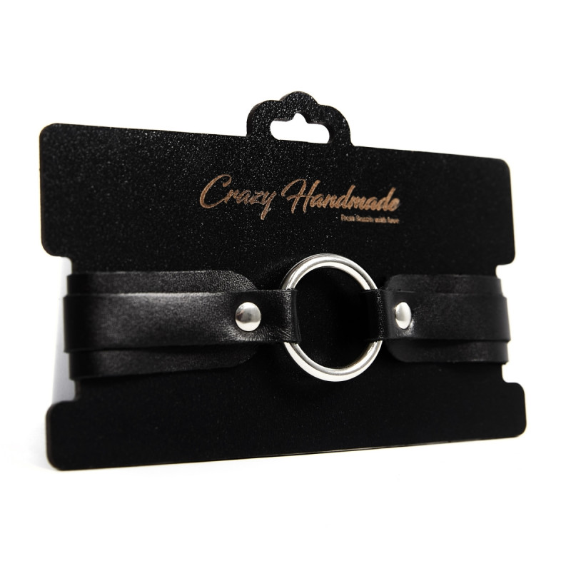 Однослойный чокер из натуральной кожи в виде классического галстука с воротником. Посередине расположено стальное хромированное кольцо.